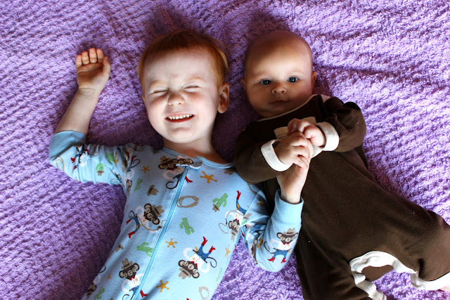 This last one is my favourite. This sums up our mornings, Buzz laughing from jumping on the bed, Bo staring at you with his deep blue eyes, the boys holding hands. In the three months since the arrival of Bo the boys have become close, Bo watches Buzz when he is near, Buzz requests Bo at night when he won't fall asleep, holds his hand when they're together. When they are happy, they are lovely.